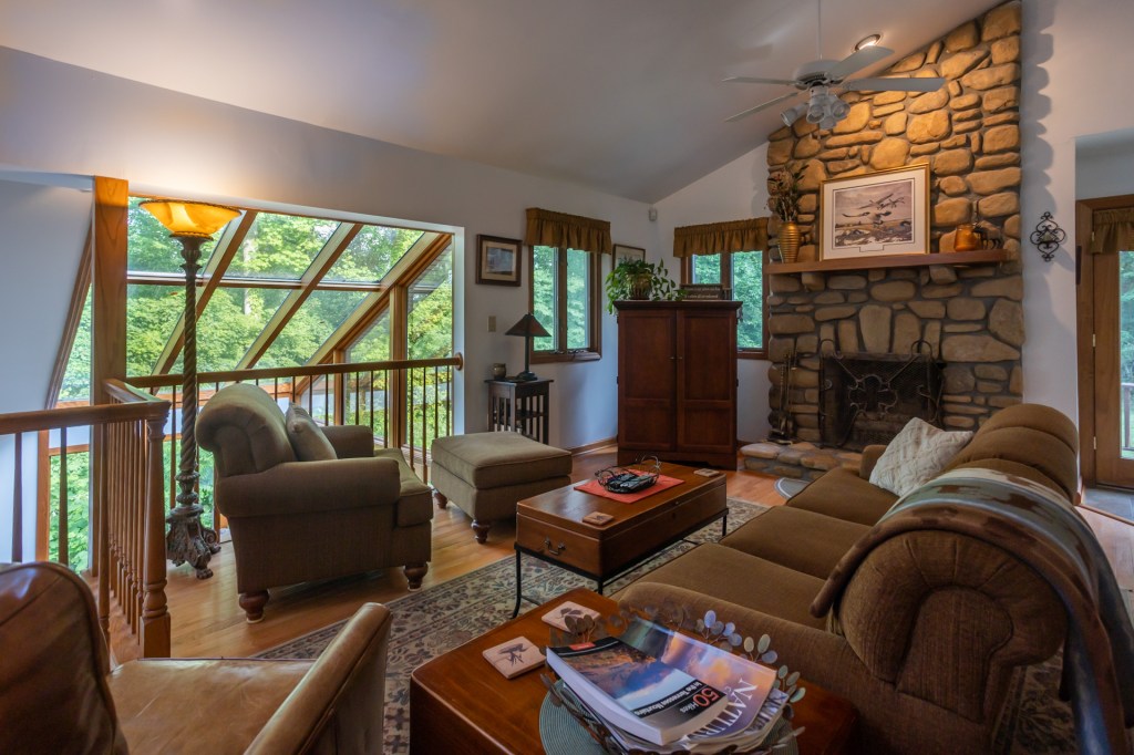 Note that the Retreat is equipped with an in-house security and the Ring Camera security system. The House is located on a hill that is approx. 70′ in elevation above the river. There is a gravel/dirt road to walk down (approx an 18 – 40 % grade to reach the river. Vehicles are not allowed to drive down to the river.